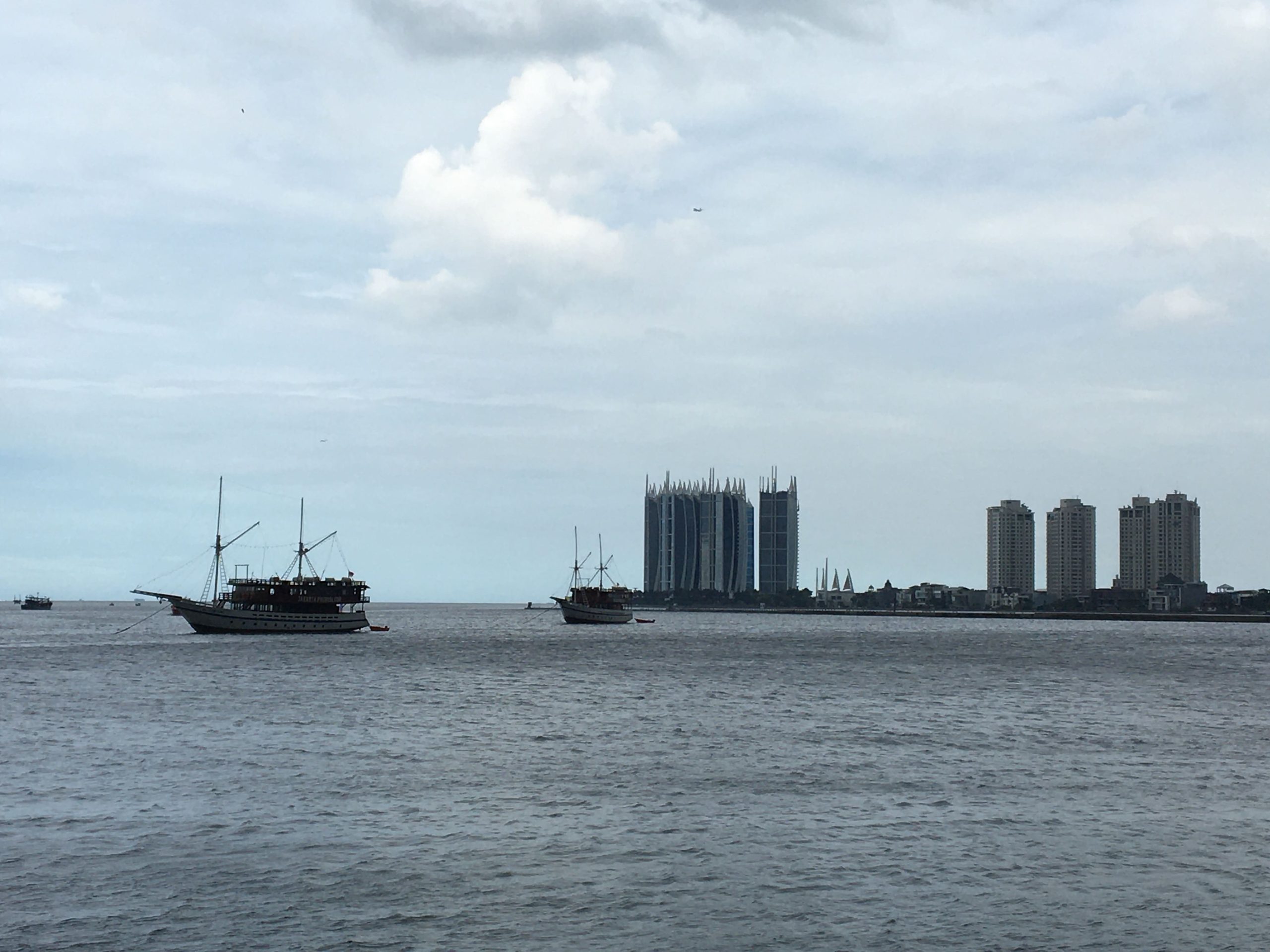 Waaah jadi begini pemandangan dari Baywalk Pluit. Aku pernah melihat dari seberangnya alias Muara Angke. Ikonik banget gedungnya. Kalau malam cakeeeep!